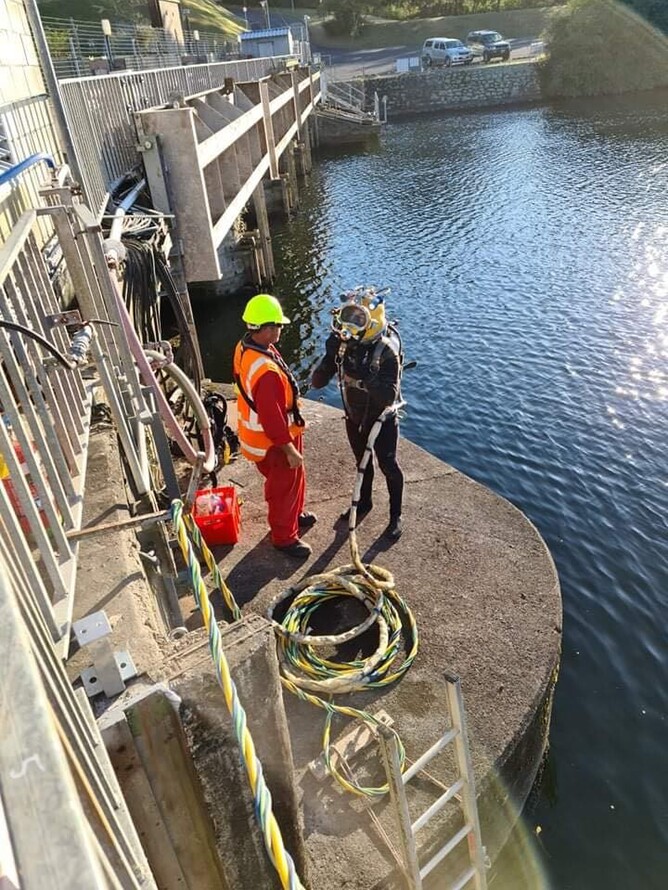 Diving at the various hydro dams throughout the Waikato area allows our divers to experience various types of 'civil' diving and various diving depths. A lot of the hydro dam diving jobs involve sealing stop logs and working with the dam staff and contractors to ensure that the job runs smoothly. This can involve road closures, and working around cranes. It means that all parties involves need to work together to ensure that everyone and everything is considered in the Health & Safety plan for the project. Some of the deep diving projects mean that we have to take our certified hypobaric chamber on site as a safety measure!