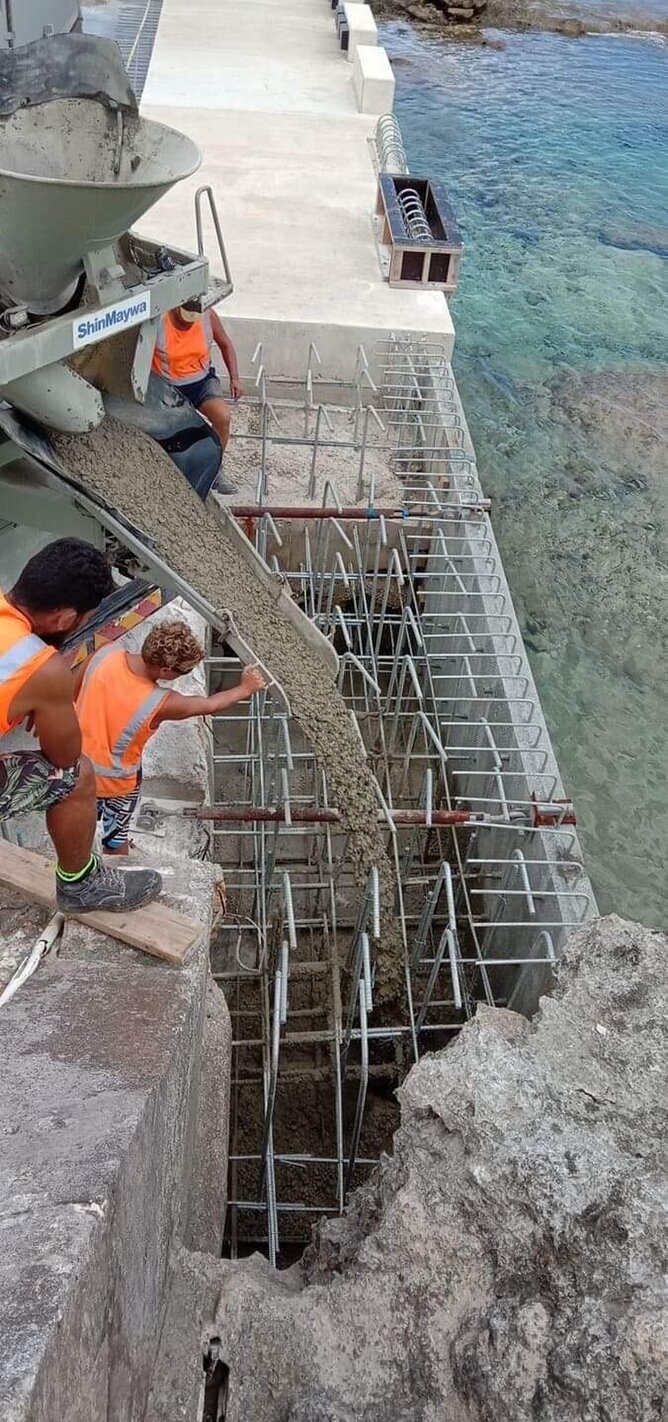 The wharf extensions are nearly finished, and our team have been working hard right through the year to ensure that this project gets finished on time and on budget. The wharf extensions will be a great asset to the Niuean people and the wharf will get a lot of use from various groups within the Niuean community. This project has involved both marine work and topside work. Chiselling out a channel in the hard-coral reef for the large concrete panels to sit in, tying in rebar for the strengthening of the concrete and then pouring the concrete. We have worked with both international and local suppliers throughout this project, and it will be finished in December 2020.